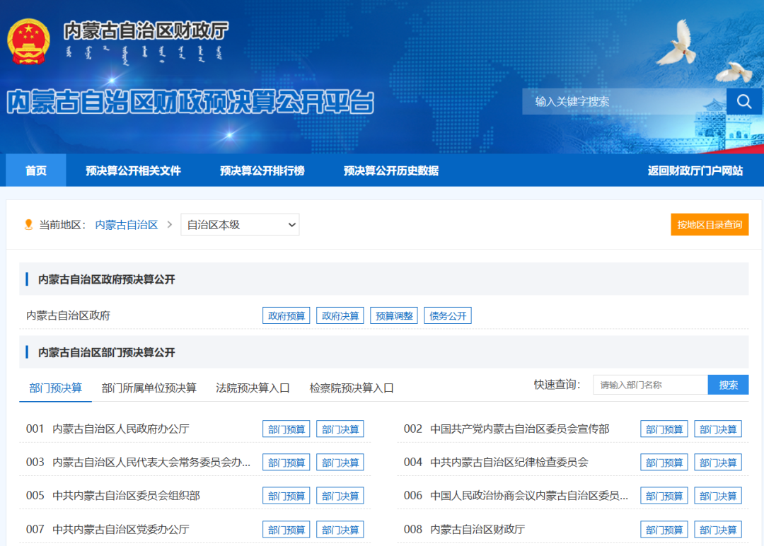 (来源:乌兰察布财政) ![]() ![]() 公开部门决算,是政府信息公开工作的重要内容。近期,在内蒙古自治区财政厅的精心组织和统一部署下,内蒙古自治区本级所有非涉密部门已依法按时完成2024年度部门决算公开工作。 自治区本级部门决算信息主要包括:部门概况、部门决算表、部门决算情况说明、名词解释、决算公开联系方式及信息反馈渠道。涵盖部门收支总体情况、财政拨款收支情况、政府采购支出情况、国有资产情况、预算绩效情况等内容。 为方便查阅,所有自治区本级部门的决算信息均通过 “内蒙古自治区财政预决算公开平台” 进行集中公开。 (阅读原文查看决算报告) ]article_adlist--> (来源:内蒙古财政微信公众号)
